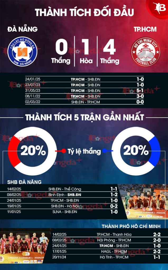 Không có sự chỉ đạo của HLV Lê Đức Tuấn nên nhiều khả năng, các trợ lý như Nguyễn Quốc Long sẽ đảm nhiệm vai trò dẫn dắt SHB.ĐN. Tuy vậy, chất lượng của cầu thủ mới quyết định kết quả. Trên phương diện này, SHB.ĐN và TP.HCM được đánh giá ngang ngửa nhau nên một kết quả bất phân thắng bại nếu xảy ra cũng không phải là bất ngờ.