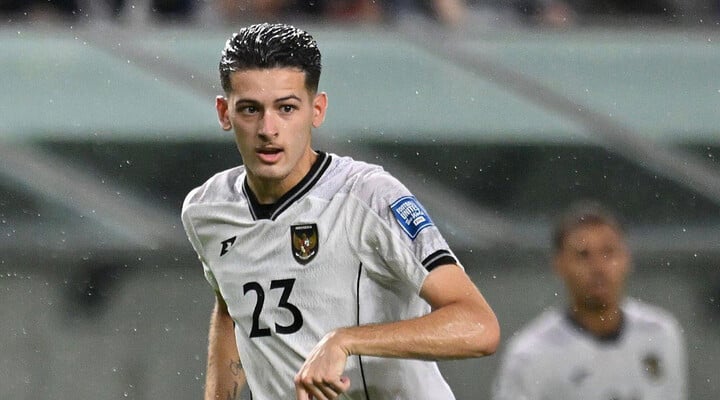 Đội tuyển Indonesia: Audero, Hilgers, Idzes, Hubner, Diks, Pelupessy, Haye, Sayuri, James, Beckham Putra, Romeny.